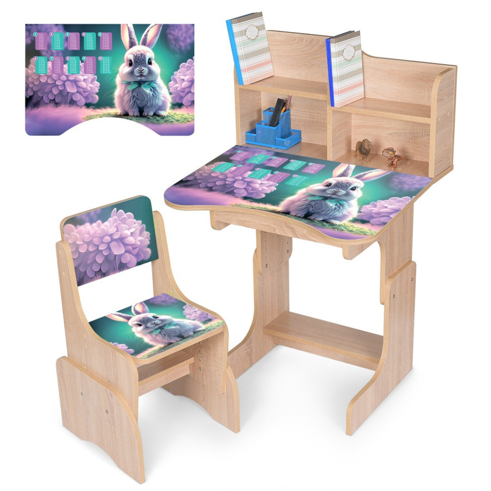 Дитяча парта 2071 має надбудову з поличками для книжок, для зручності користувача в нижній частині столу розташована підставка для ніг. Дитяча парта 2071 виготовлена з матеріалів високої якості, фарби, які використовували для її фарбування, зроблені на водній основі, нетоксичні та безпечні для здоров'я. Парта являє собою красиву, якісну і комфортну модель, за якою ваша дитина зможе робити уроки, займатися творчістю, грати і їсти.